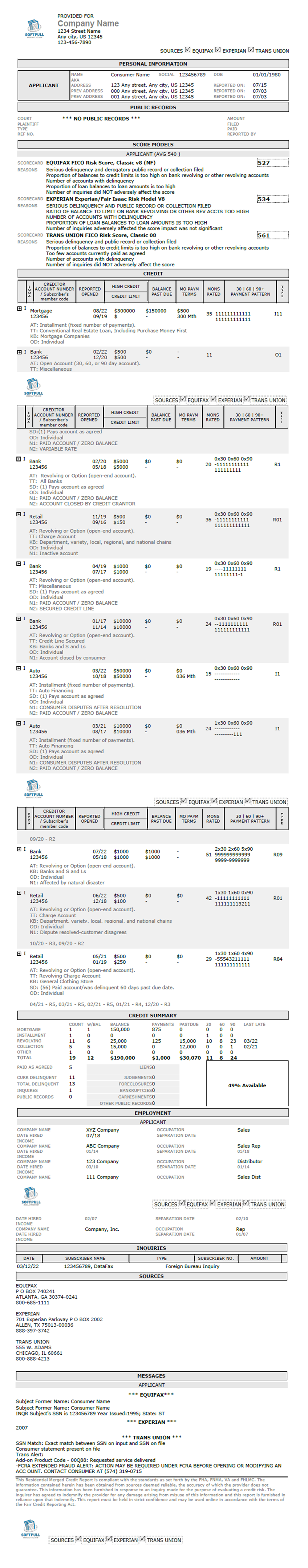 Tri-Bureau Merge Soft Pull Sample Report